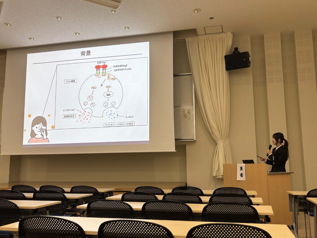 酒井さん、辻さん、宮下さんが卒業研究を発表しました(令和7年度 金沢大学医薬保健学域薬学類 卒業研究発表会)。